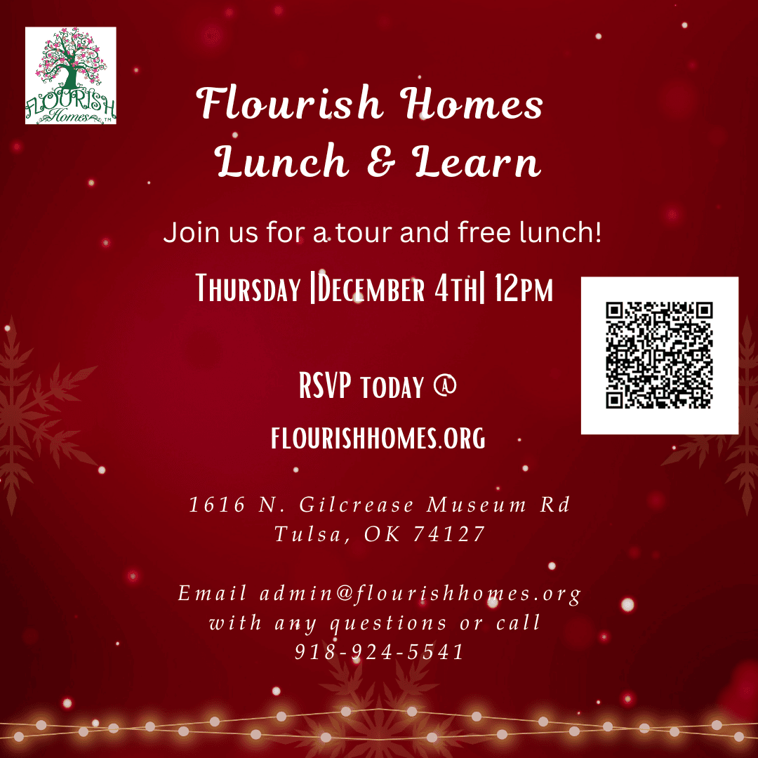 Come enjoy free lunch and a tour! Beth Reinwald, Founder & CEO, would love to visit with you. Beth will share her heart and vision for Flourish Homes, enjoy a tour, and lunch is on us! RSVP and let us know you're coming and don't forget to bring a friend! https://zfrmz.com/6CYZPuzYUdSXE6sLmbum